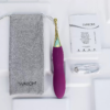 SVAKOM Beatrice gây ấn tượng mạnh ngay từ cái nhìn đầu tiên với thiết kế cong nhẹ, phần đầu bằng kim loại mạ vàng bóng loáng tạo điểm nhấn sang trọng. Tay cầm màu tím mận được làm từ silicone y tế cao cấp, mềm mịn, chống nước và cực kỳ thân thiện với làn da nhạy cảm.