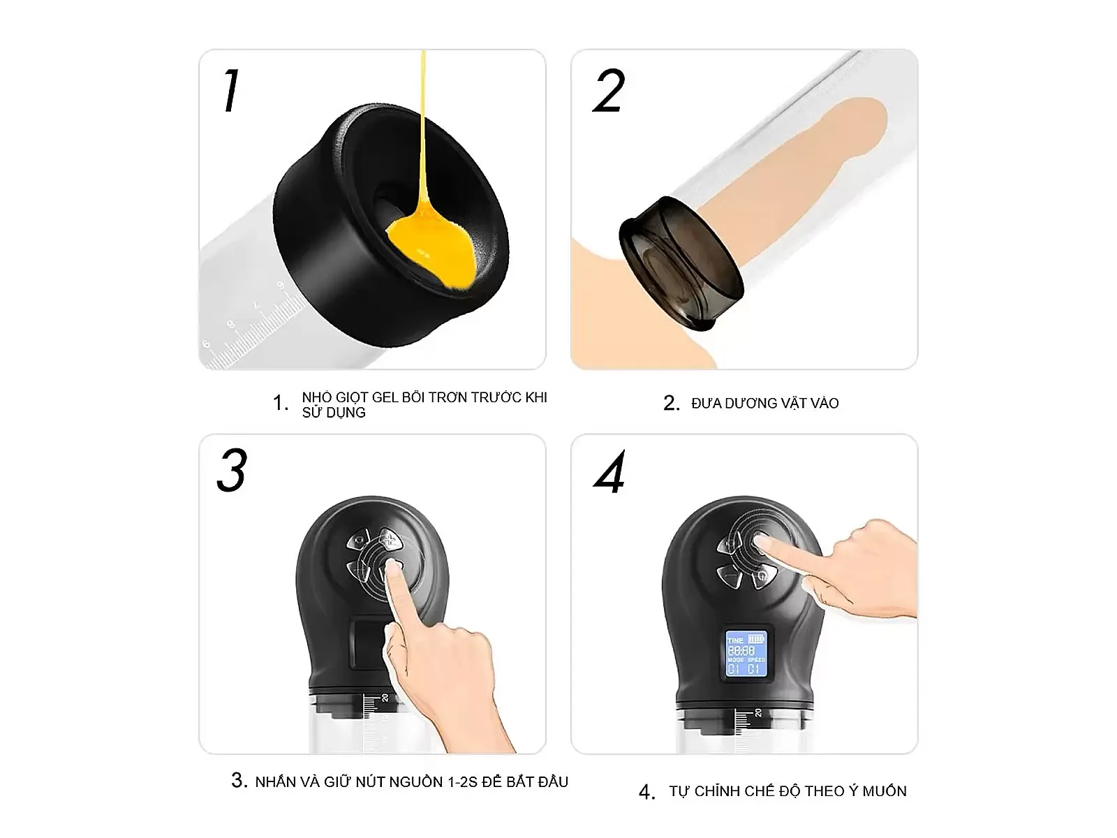 Đưa dương vật vào ống hút, bật máy bằng nút On/Off.
